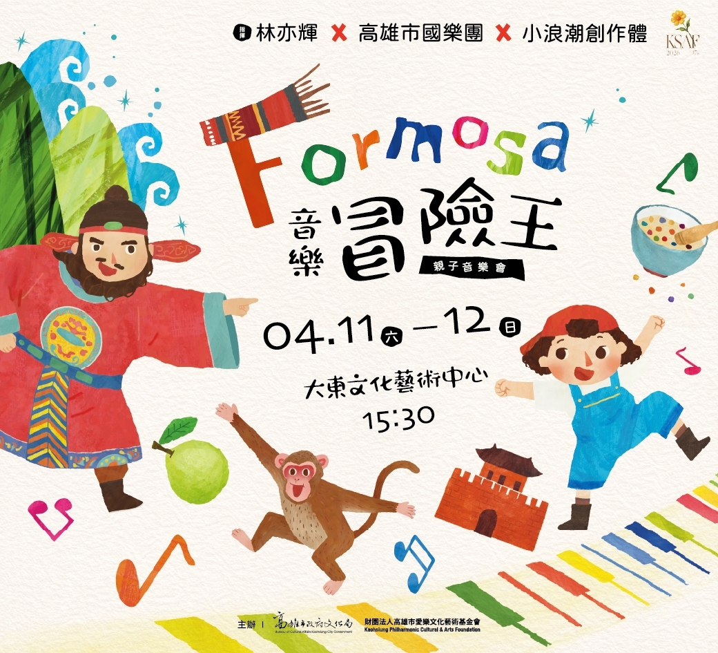 4/11-12《Formosa音樂冒險王》高市國親子音樂會以「用音樂遊歷臺灣」為核心概念,結合戲劇與影像,帶領孩子展開一場奇幻文化冒險。故事從雲林的布袋戲棚下展開,神祕又幽默的嘉慶君意外幻化為真人,與充滿好奇心的小女孩歆歆,在「闖關任務」的引導下,走訪台南、台北、苗栗、高雄、台東與澎湖,蒐集屬於這座島嶼的「台灣味」。國樂現場演奏化身冒險旅程的引路人,安平古城的歷史回聲、大稻埕的繁華節奏、客家庄的擂茶韻律、山海交會的力量,以及原住民族歌舞的生命力,一站一站,被音樂喚醒。舞台上國樂器輪番登場,與戲劇、舞蹈、燈光與影像交織音樂不只被「聽見」,更能被「看見」、被「感受」。